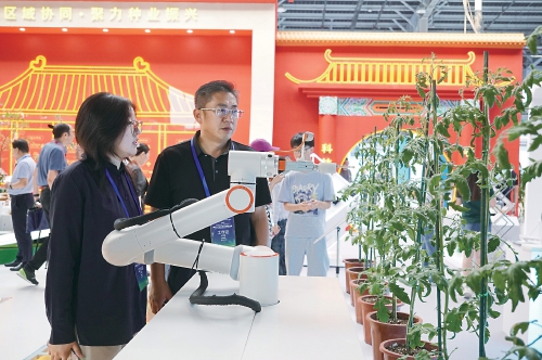 育种机器人“吉儿”。记者 李浩 摄 提起北京,多数人想到的可能是故宫的红墙、都市的霓虹或深厚的文化,鲜少有人会将其与农业联系起来。但事实上,全国每十粒种子里,就有一粒源自北京。 “沃德188”白羽肉鸡打破国外种源垄断,让中国人少了份“卡脖子”担忧;玉米品种占据全国18%的市场份额,10个推广面积最大的玉米品种中北京独占5席;肉种鸭、蛋种鸡、国产奶牛冻精分别拿下全国80%、66%、35%的市场份额……这些都是北京立足科技创新中心战略定位在种业领域开辟出的“高精尖”新天地。 当下,已步入种业振兴从“三年打基础”迈向“五年见成效”的关键阶段,请跟随记者走进种业大市——北京,探寻这座城市如何以科技为核,打造具有全球竞争力的种业科技创新高地,又将如何为国家粮食安全与农业现代化注入“北京动能”。 北京种业,强在哪儿? 创新,是北京种业最鲜明的标签。 从人工智能到智能装备,从大数据分析到智慧育种,一系列“高精尖”技术正在这里落地生花。在前不久举行的第三十二届中国北京种业大会上,全球首台可自动巡航杂交授粉的智能育种机器人“吉儿”(GEAIR)惊艳亮相。中国科学院遗传与发育生物学研究所研究员许操介绍:“这套系统实现了生物技术筑基、人工智能赋能、机器人劳作的智能育种新模式,将大幅度提高育种效率。” 同样引人注目的,还有北京沃德博创信息科技有限公司研发的“人工智能+蛋种鸡养殖”成果。人工智能首次深度融入蛋鸡育种、种鸡扩繁和疾病诊断等关键环节,以强劲势头展现出“人工智能+家禽产业”的破局力量。展会现场,7个智慧农业大模型、29款种业芯片、12项生物育种专利、46个新品种集中亮相,勾勒出北京育种创新的立体图景。 如何能高效、精准地实现动植物定向遗传改造?在基因编辑领域,北京同样交出了领跑答卷。中国农业大学教授赖锦盛团队开发出两种新型基因编辑工具Casδ和Casσ,不仅分子量更小、靶向范围也更宽,进一步丰富了我国自主基因编辑底盘技术体系。 成功开发全新农业智能系统,建成全球最大的西瓜、玉米DNA指纹库,率先完成西瓜、白菜等多个物种基因测序,形成基因编辑工具、杂交小麦育种等一批打破国外垄断的原创性技术……在突破高精尖领域的道路上,北京的“最强大脑”持续拓展育种技术边界。在北京,每年约有300件育种发明专利在这里诞生,占全国的12%;基因编辑抗蓝耳病猪新种质成功创制,预计产业化后年经济效益可超600亿元。 科技的突破最终要落到品种上。北京育成的“大品种”,正在实实在在充盈我国粮仓。对标国际,肉鸭、蛋鸡等9个物种实现领跑,籽粒玉米、水果黄瓜等9个物种与国际并跑;“京科501”玉米能适应不同种植密度和多样胁迫环境,是名副其实的顺境高产、逆境稳产智慧品种;“京红”“京粉”“农大6号”等蛋鸡品种,让国产化率超三分之二,其中“京粉6号”更是我国首个实现“700天产500枚蛋”的高产蛋鸡品种……从主食到畜禽,北京种业的身影已深深嵌入每一环。 北京种业,为啥这么强? “北京市是最早重视、也是最有力度支持种业振兴的地方。”北京市农林科学院蔬菜研究所所长温常龙的这句话,道出了北京种业强势崛起的关键——政策先行,为种业发展筑牢框架。 从顶层设计出发,北京为种业振兴制定了清晰的路线图:先后出台《北京现代种业发展三年行动计划(2020—2022年)》《北京种业振兴实施方案》,颁布实施《北京市种子条例》,并将重点种业创新基地纳入区域规划,确保“一张蓝图绘到底”。机制层面,23个市级成员、13个区的种业振兴工作协调机制先后成立,形成“上下一盘棋”的推动格局。 截至2025年,这套政策框架已显成效。北京保存种质资源214.4万份,其中国家级206万份,数量居全国首位;建成国家级种质资源库(圃、场)20个、市级保护单位21家,为种业创新提供了坚实的“资源家底”。 科研平台是另一大底气。北京汇聚了全国三分之一以上的农业科研“国家队”,以及超过一半的涉农两院院士(47人),是全国农业科技资源最密集的区域,以顶尖科研力量为根基,引领产业变革的原始创新成果。 北京的优势,不只在于“能创新”,更在于“善转化”。种业创新涉及研发、转化、推广多个环节,单一主体难以实现全链条突破。为此,北京构建起“科研+企业+政府”协同格局,让各类资源在产业链上精准发力,让前沿技术有了落地生根的土壤。 京研益农(北京)种业科技有限公司是参与联合攻关项目的企业之一,也是北京市农林科学院重要成果转化单位。公司副总经理丁海凤说:“在北京市有关部门支持下,公司参与了蔬菜联合攻关项目,通过‘科研+市场’联动的方式,有力推动了蔬菜品种更新换代。”如今,该公司拥有500多个优良蔬菜品种,年销售种子100万公斤,其中白菜类占北京市场的70%,西瓜“京美”系列成为大兴区的主流品种,“拧成一股绳”的协作模式成效显著。 同样参与攻关的北京首朗生物科技有限公司,凭借“乙醇梭菌蛋白”拿到了农业农村部首张饲料原料新产品证书。这种微生物来源的新型原料,如今已成为独特的种质资源。公司常务副总经理李重阳认为,政府整合高校、企业、推广单位等资源,串联起上游研发和下游推广,缩短了周期,提高了效率。“在北京市农业农村局的支持下,我们承担了乡村振兴农业科技
